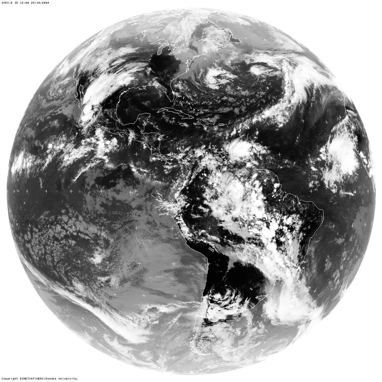 Mengamati bumi melalui satelit Geostasioner (GOES EAST, METEOSAT, IODC, GMS dan GOES WEST) tanggal 25 Oktober 2004, Jam 18