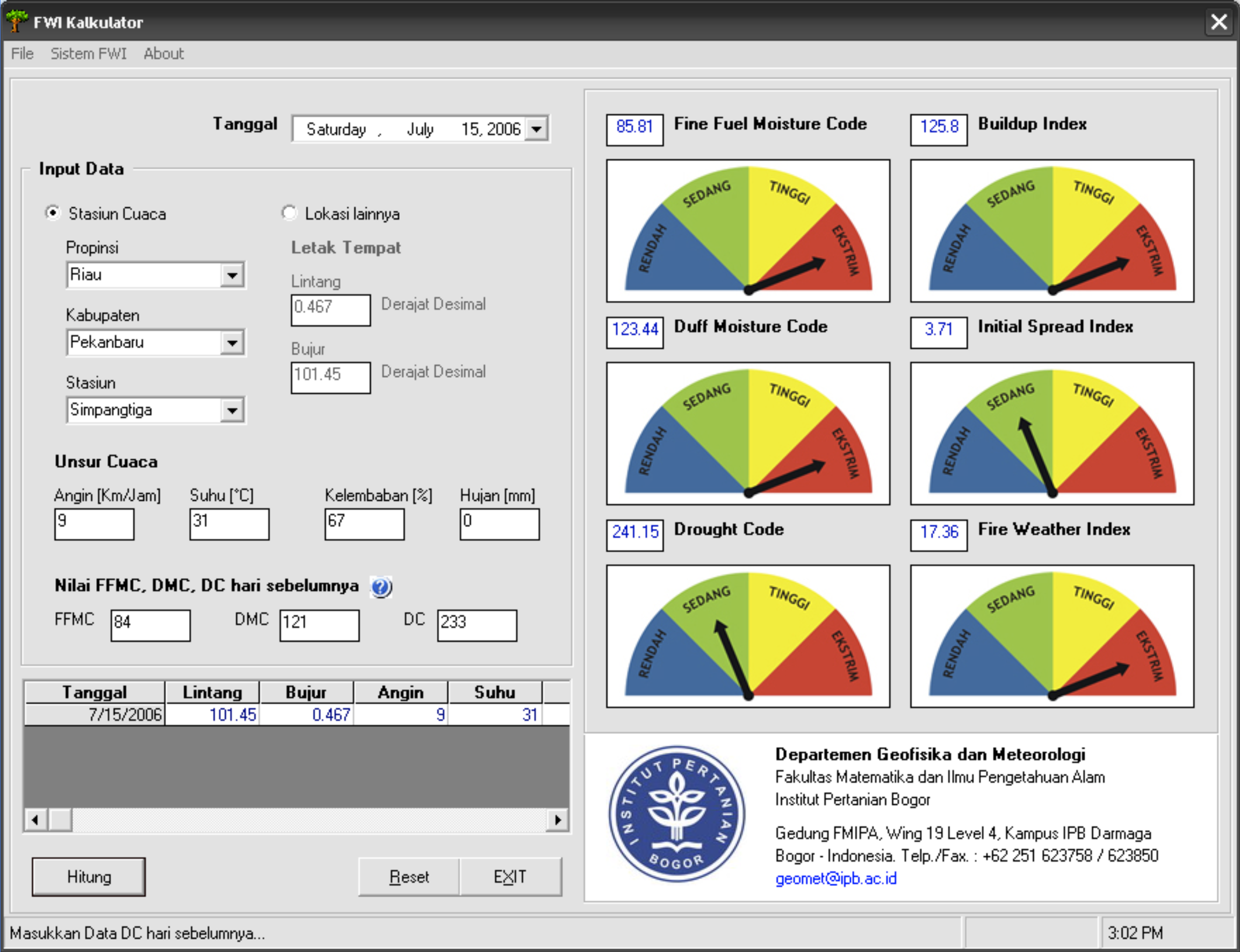LAPAN secara rutin melakukan pemantauan Sistem Peringkat Bahaya Kebakaran (SPBK/FDRS - Fire Danger Rating System) berbasis data satelit