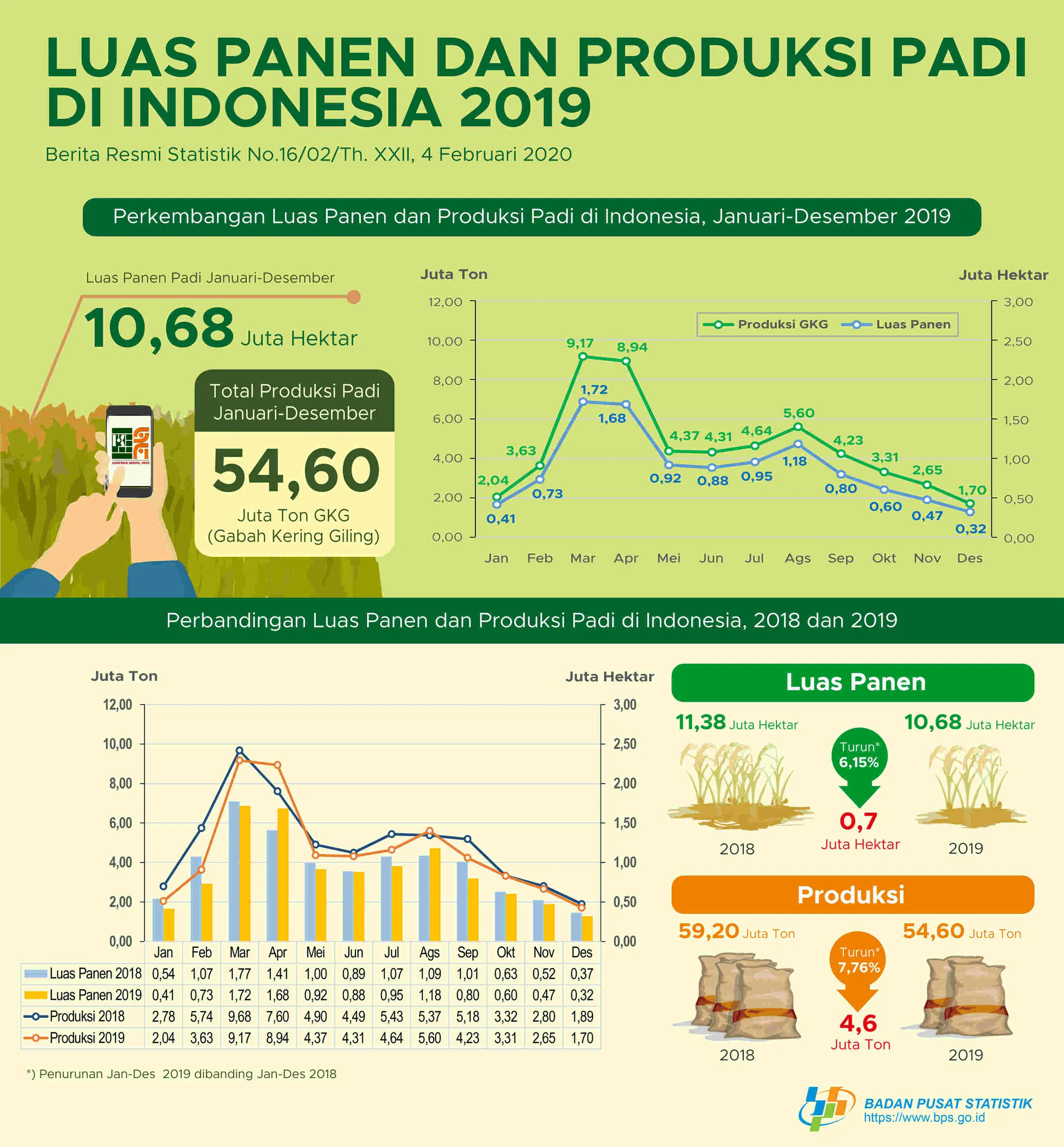 BPS (Statistics of Indonesia) release: paddy harvested area of 2019 was estimated around 10,68 million Ha