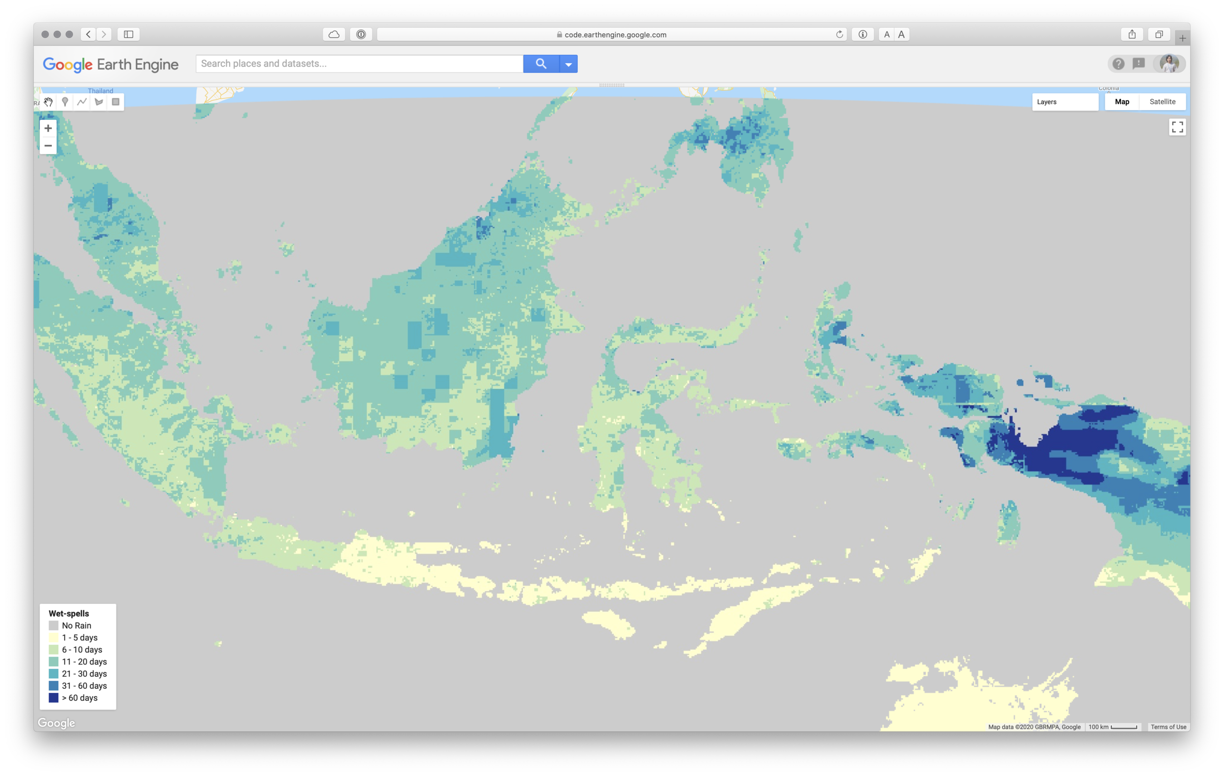 Now, it’s easy to get statistics information on AVERAGE, MINIMUM and MAXIMUM number of consecutive dry and wet days for a certain period using Google Earth Engine platform