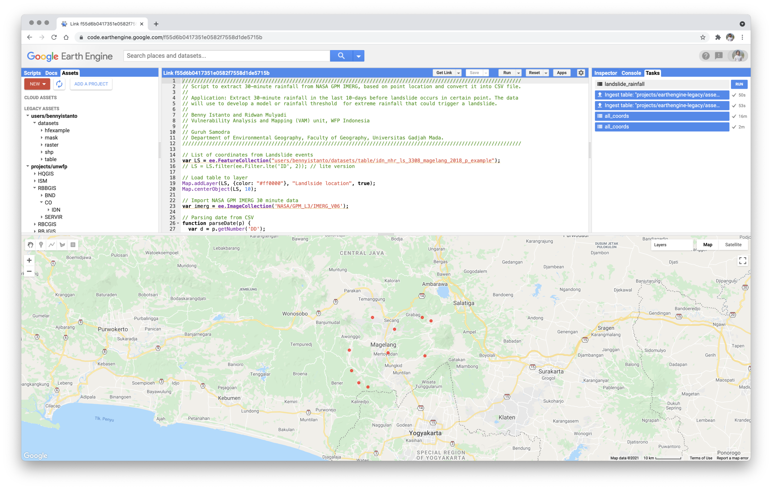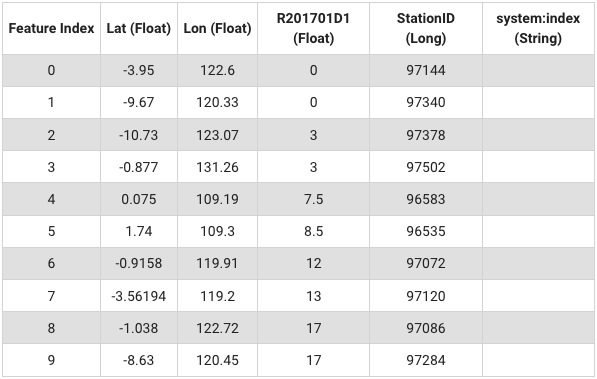 I have automatic weather station coordinates from BMKG, along with example data on precipitation accumulation for 1 - 10 Jan 2017 in csv format with column structure: Lon…