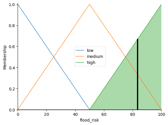 1 Implementation In the implementation phase of this analysis, we utilized Python and the Scikit-Fuzzy library to develop a fuzzy logic-based flood risk assessment model