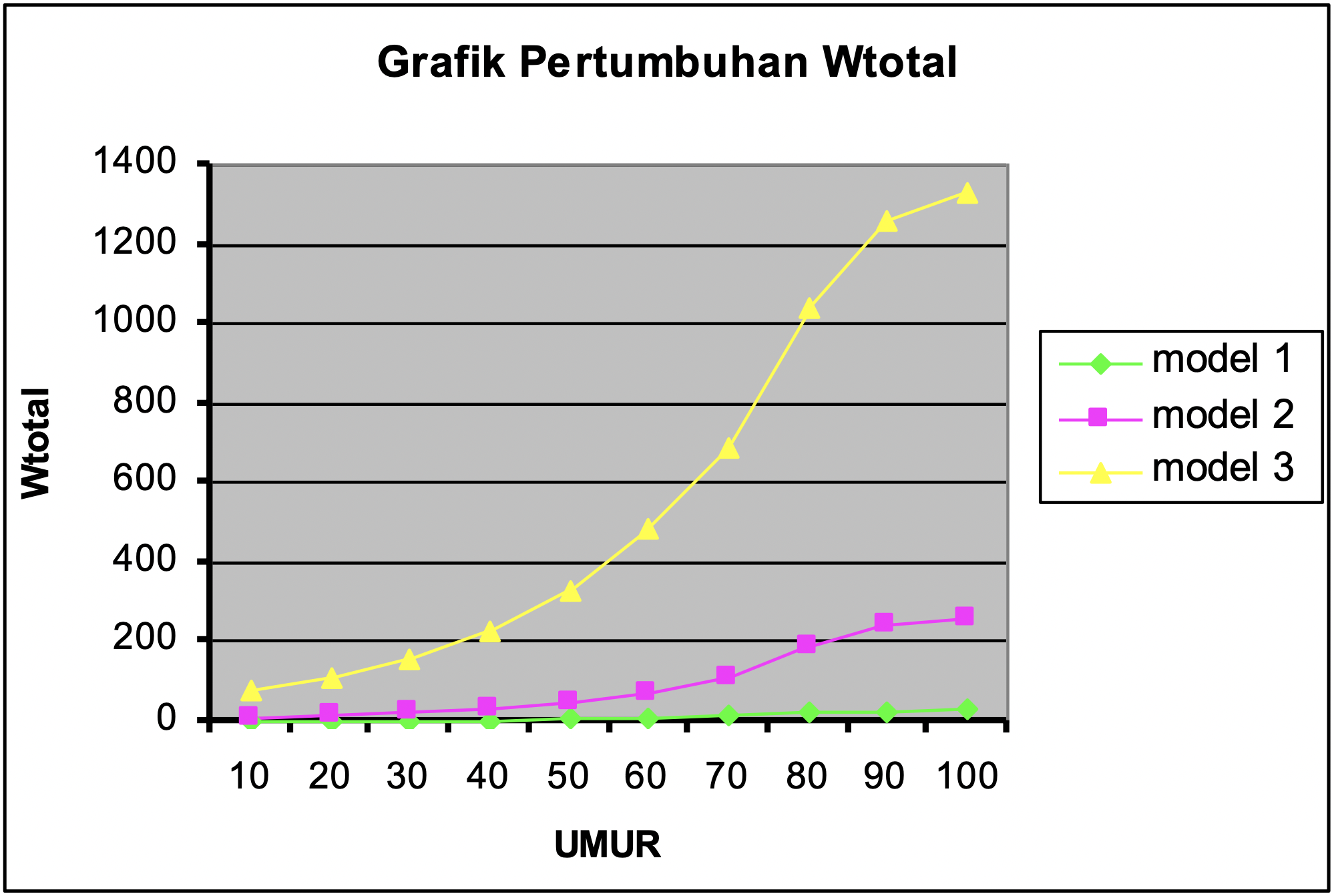 Pertambahan Wtotal juga bergantung pada besarnya LAI. Hal ini dapat dilihat pada grafik di samping: