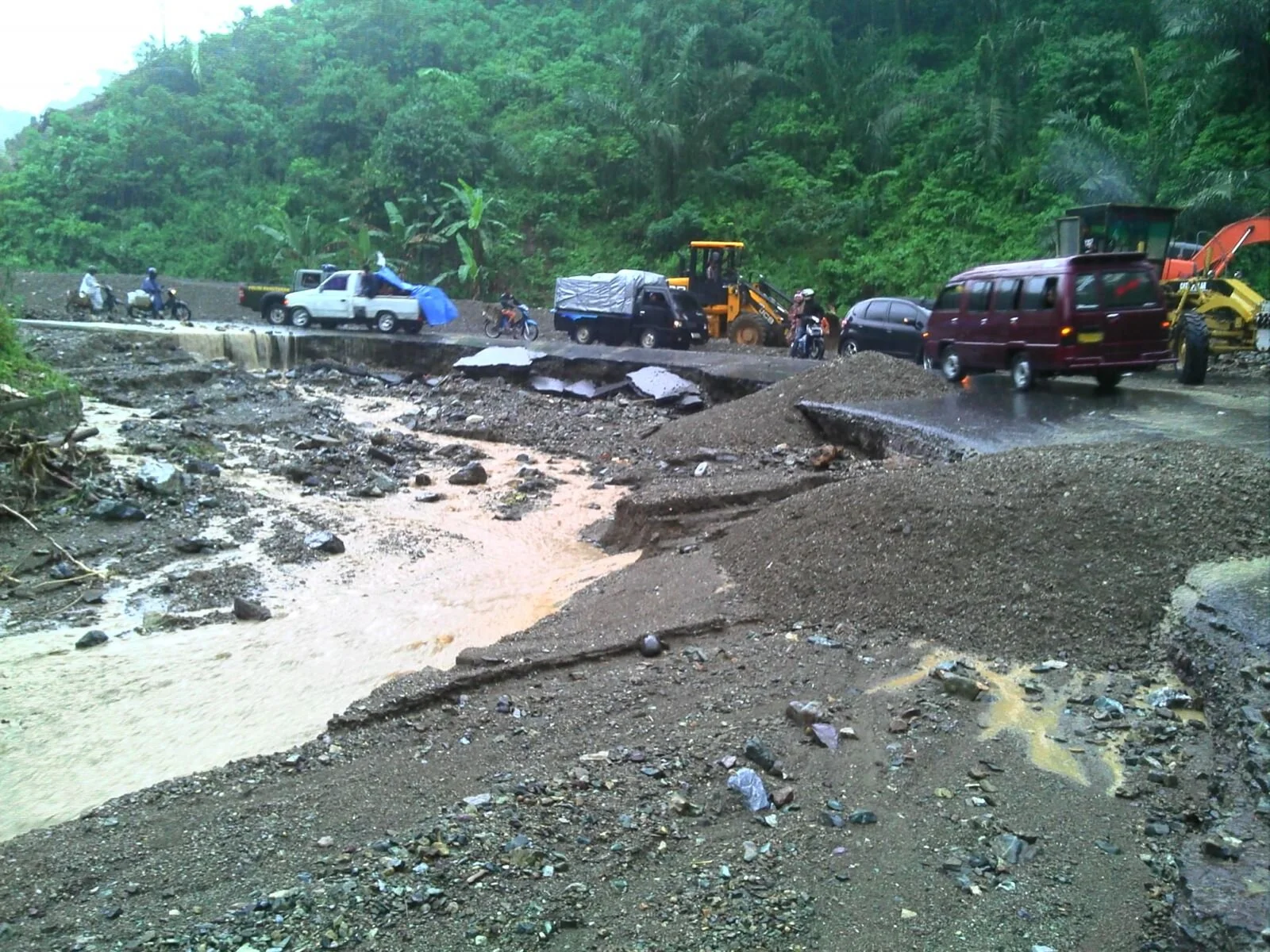 Bersama dengan teman-teman dari Dinas Bina Marga dan Cipta Karya - Kabupaten Pidie, mengunjungi lokasi banjir dan tanah longsof sekalian membuat laporan situasi.