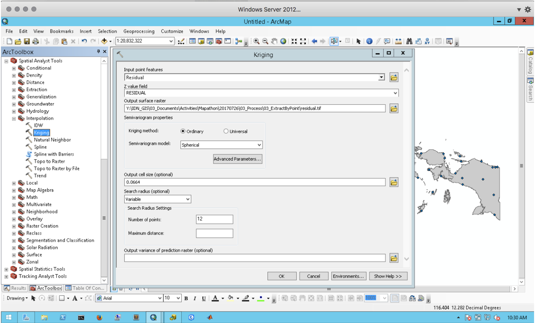 - Do Kriging Interpolation using Residual.shp as Input features and Residual column as Z value.
