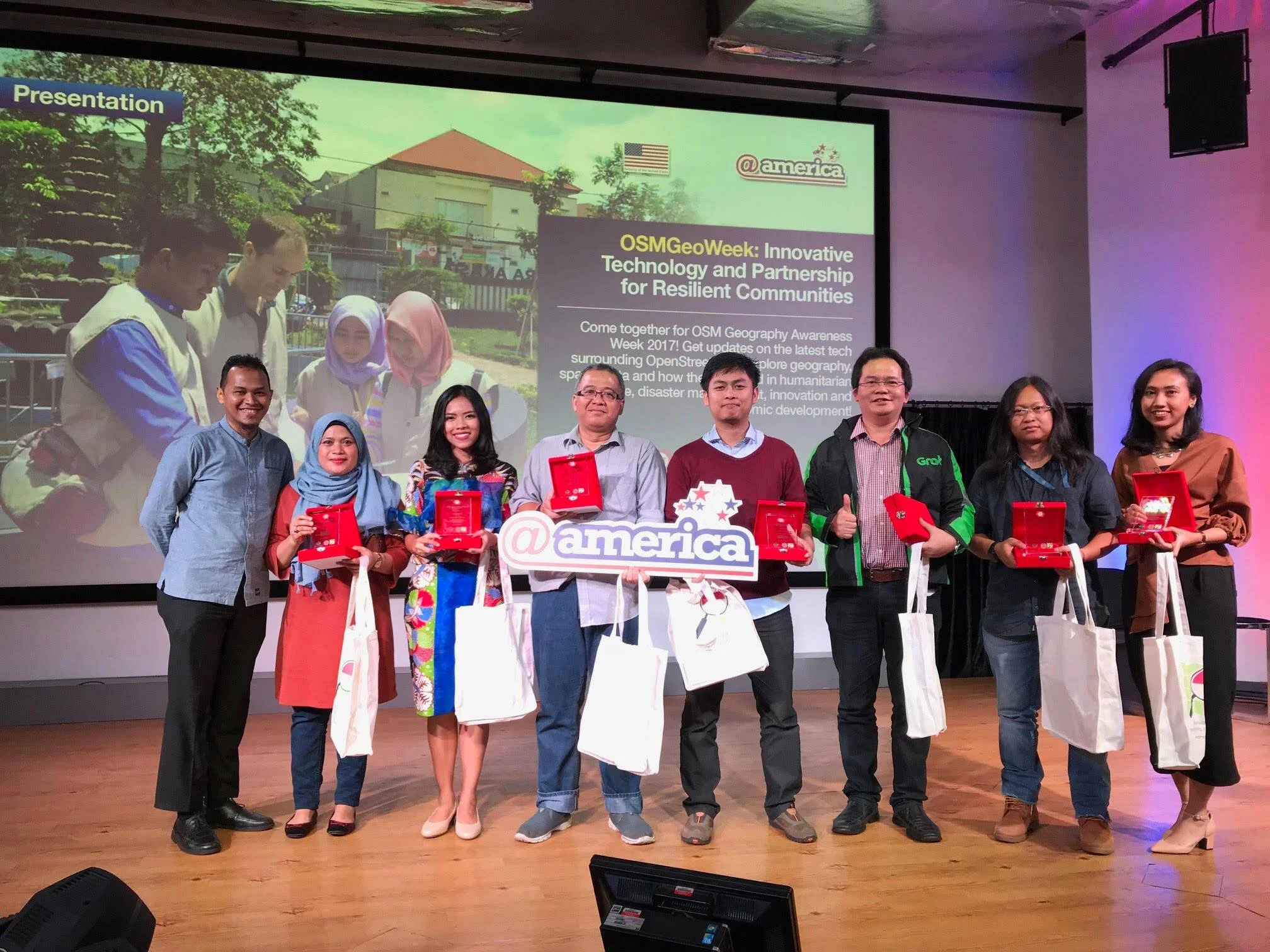OSM Geography Awareness Week 2017: Innovative Technology and Partnership for Resilient Communities. @america, Jakarta
