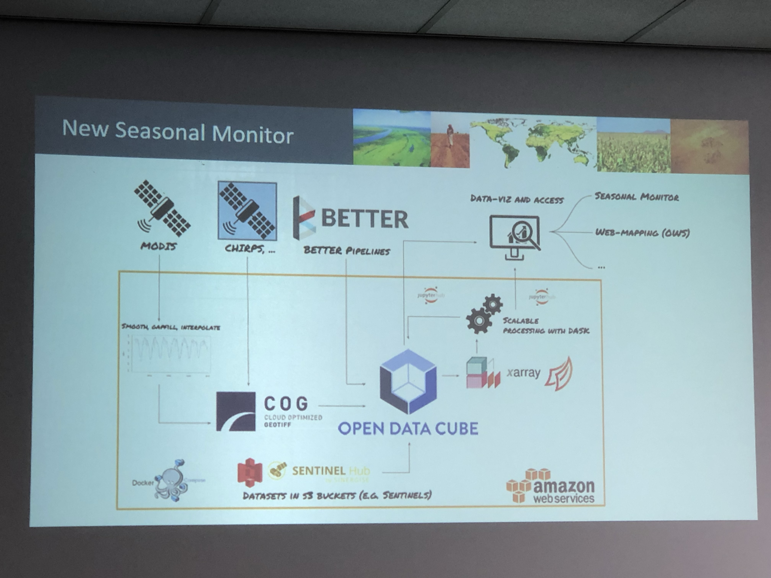 In day 2-4, I joined a task force meeting on Automated Livelihood Information Assistant (ALIA). The idea behind ALIA was generated from WFP programme officers who had several years of experience preparing for, responding to and recovering from climate-related disasters and understood the information gaps in place, and how enhanced predictive analytics could be harnessed to make WFP’s responses more effective.