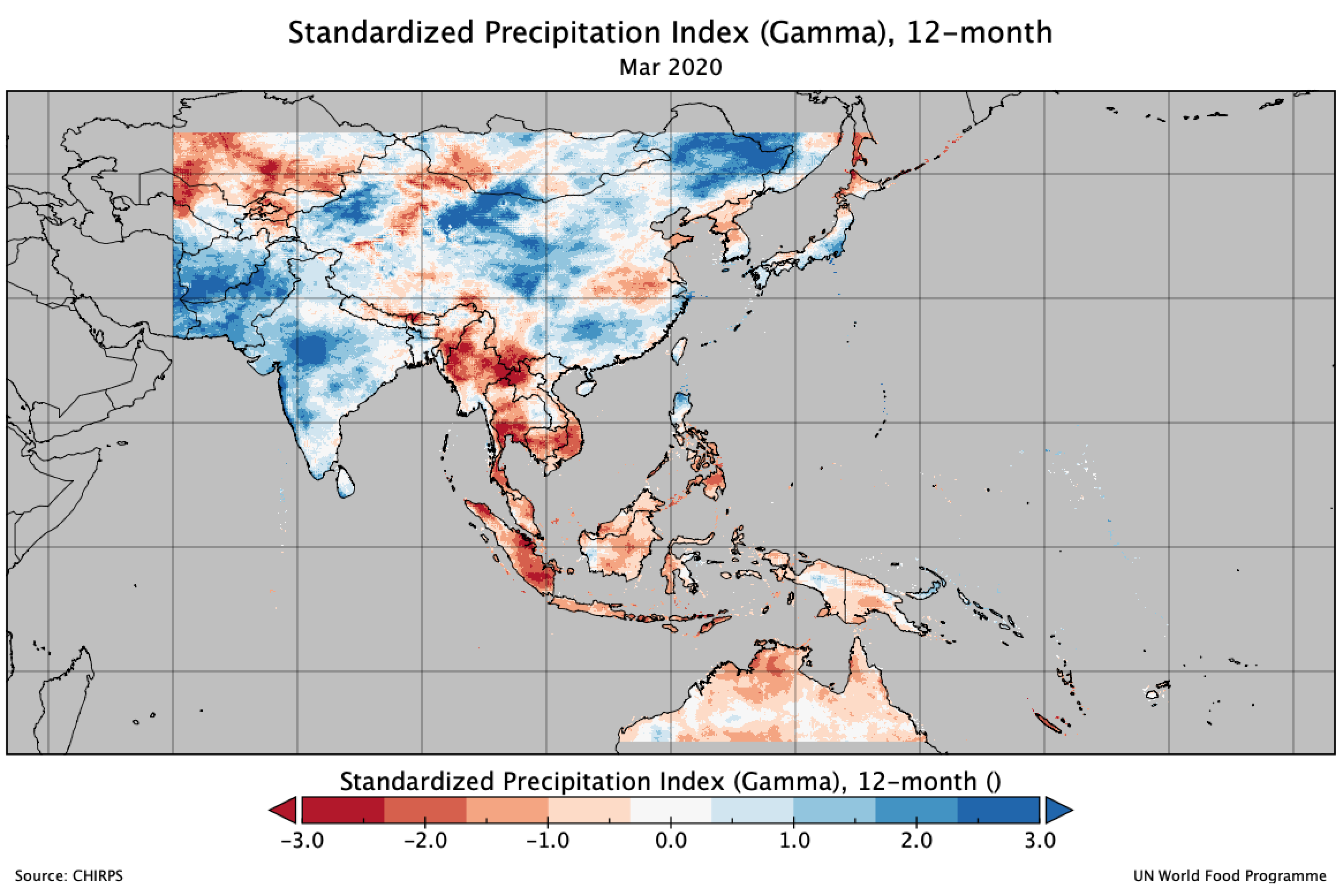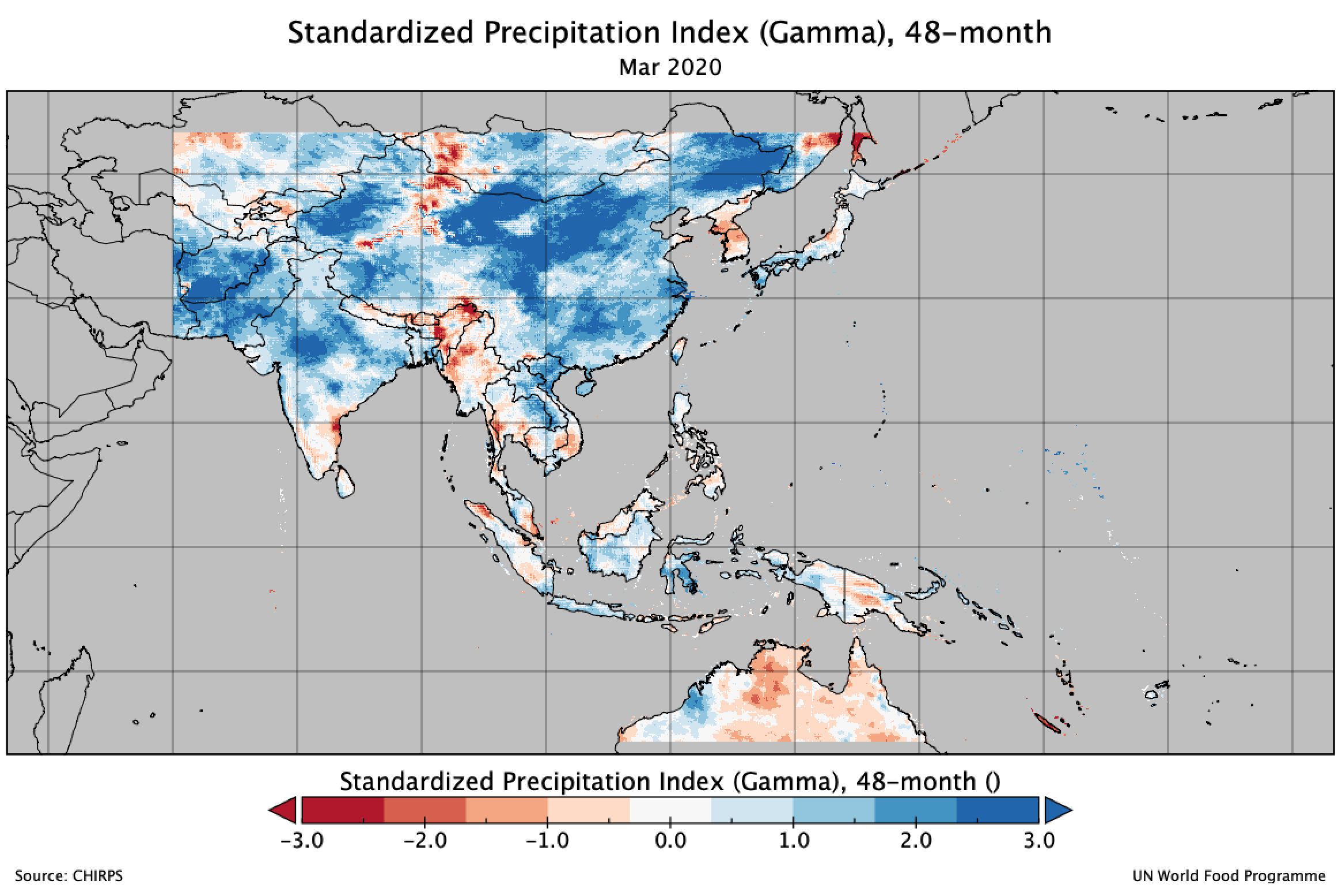 I explained in the previous blog post on how to calculate monthly SPI using daily IMERG data. This time I use CHIRPS, because I want to get higher resolution, more frequent monitoring (updated every dekad ~ 10days), and long-term historical data from 1981 – now.