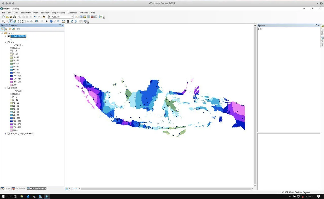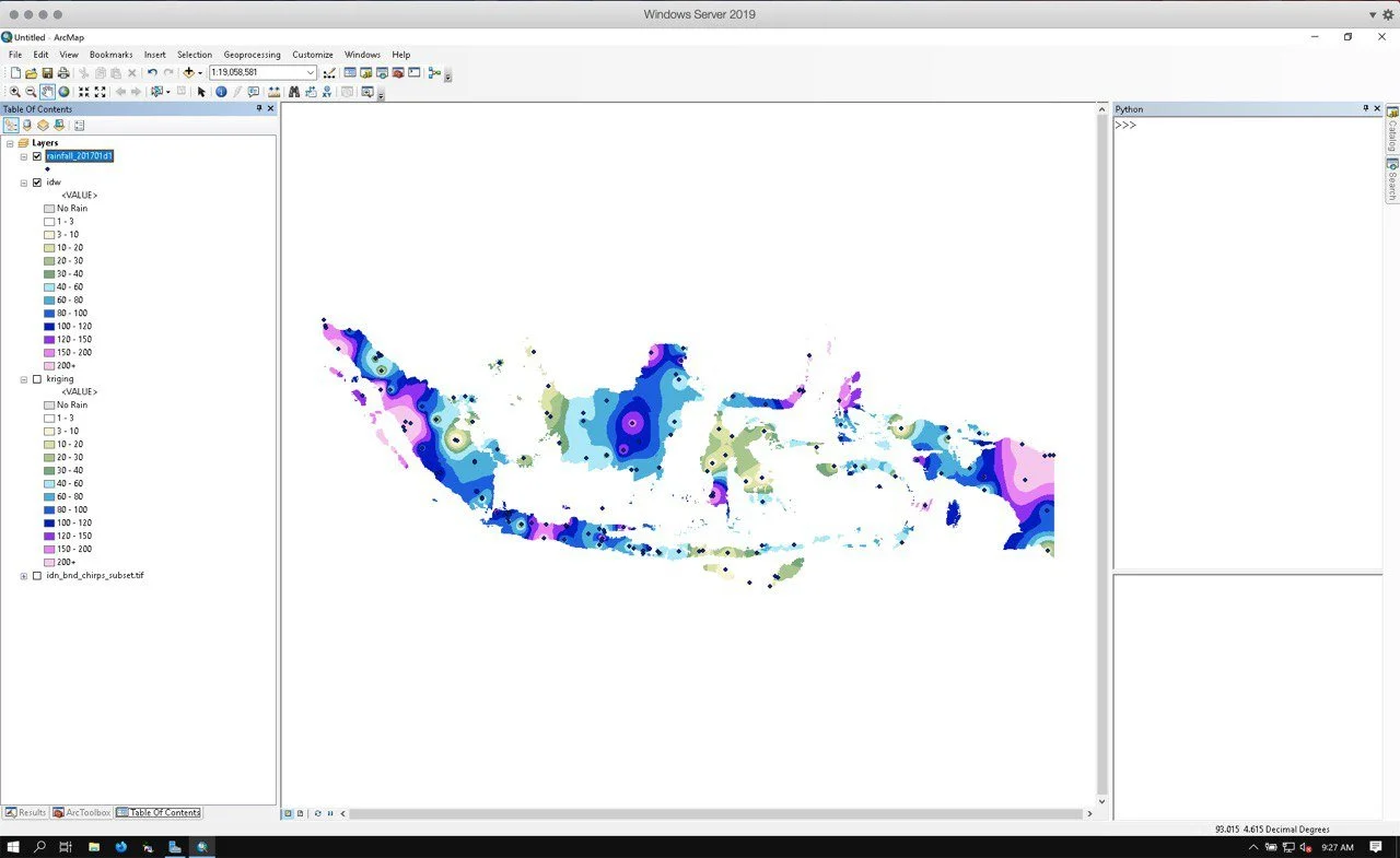 I have automatic weather station coordinates from BMKG, along with example data on precipitation accumulation for 1 - 10 Jan 2017 in csv format with column structure: Lon, Lat, Rainfall