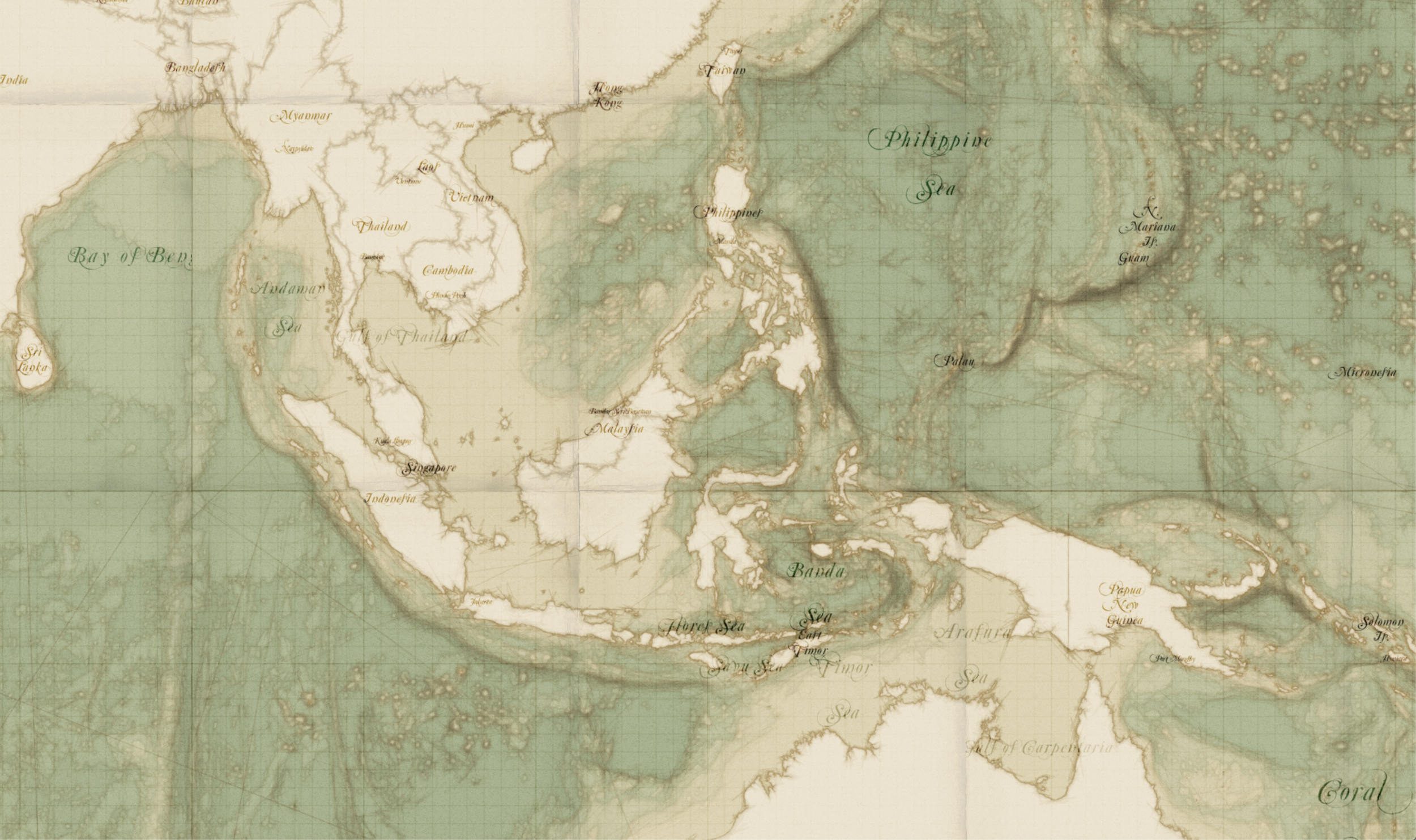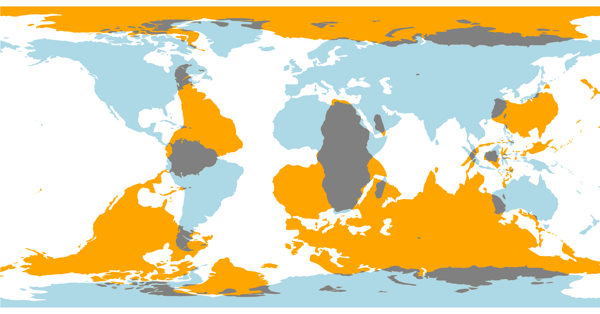 Data: Natural Earth 1:110m Physical Vectors, Land polygons including major islands. Tools: Observable