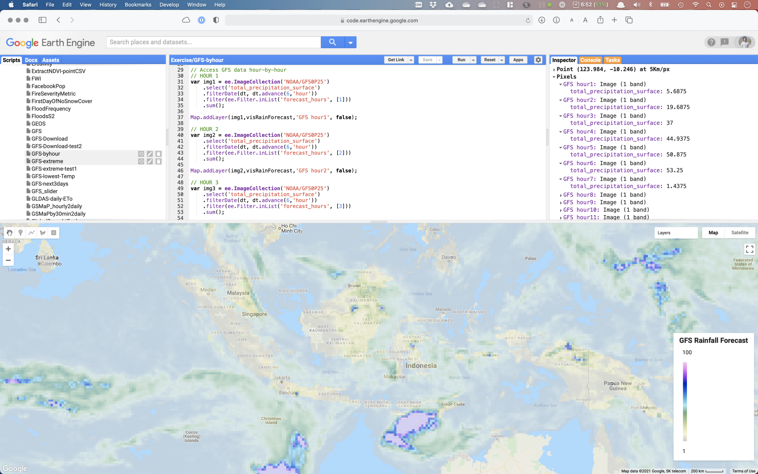 Few days ago I wrote a post on how to get GFS data using GRIB filter and NCAR/UCAR Research Data Archive. Now I will explain on how to get GFS rainfall forecast data using Google Earth Engine (GEE).