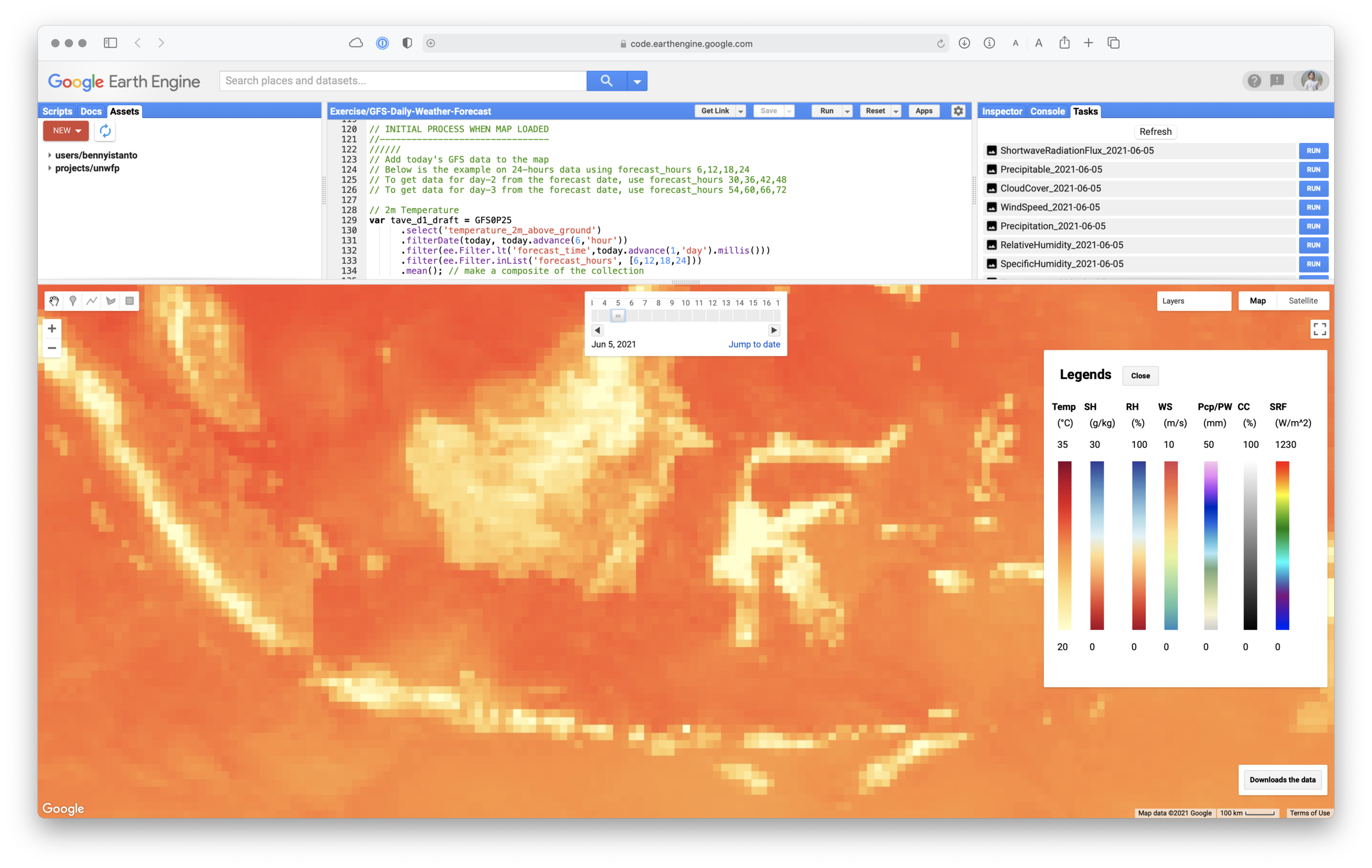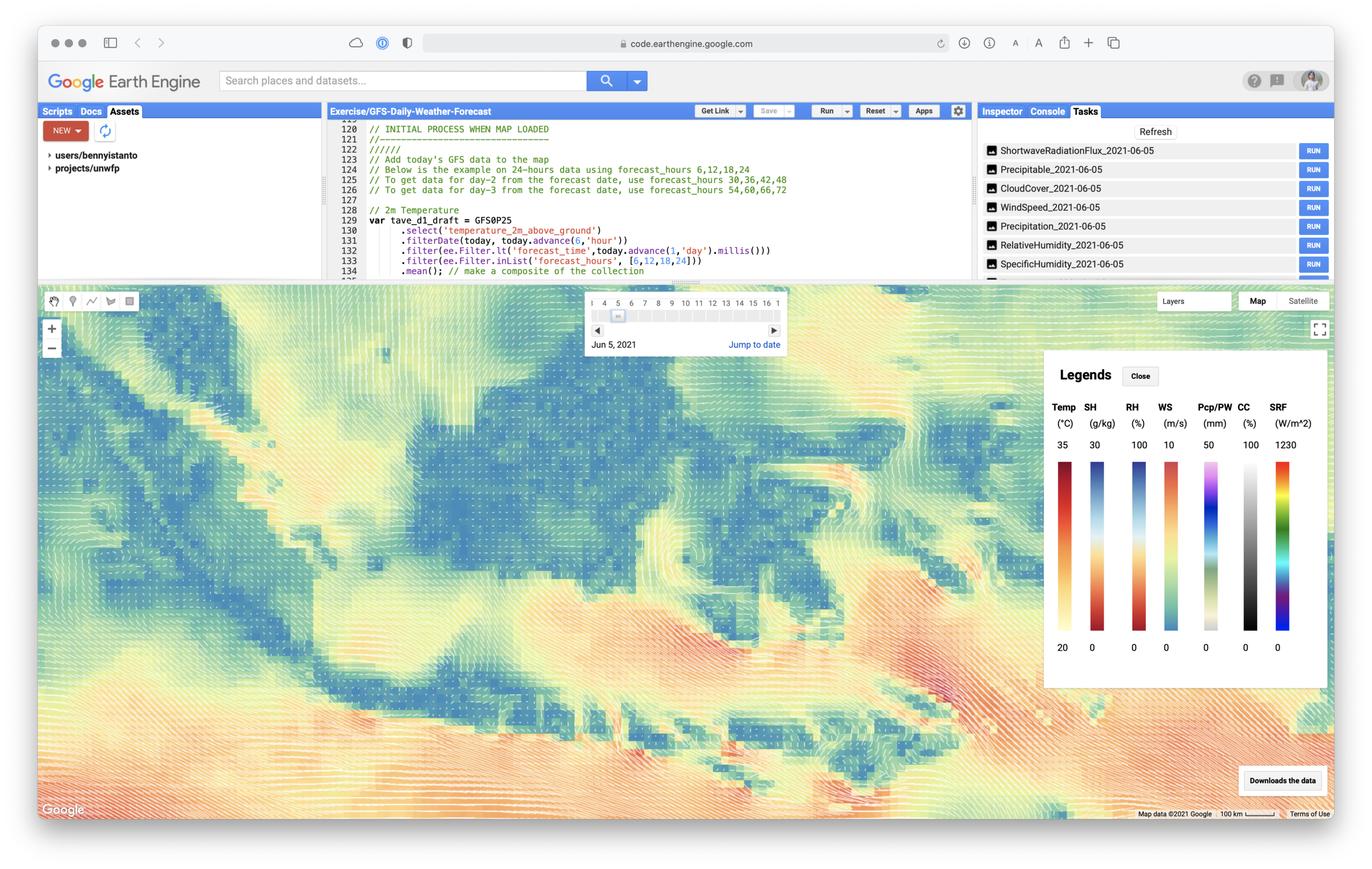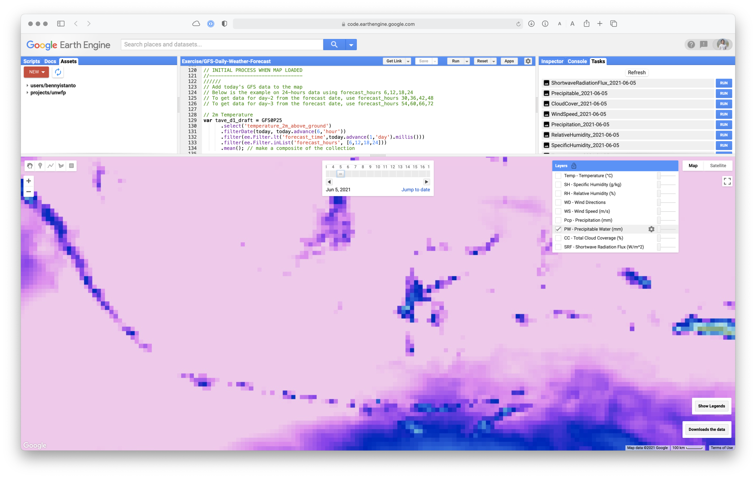 Visualize daily weather forecast from GFS using Google Earth Engine