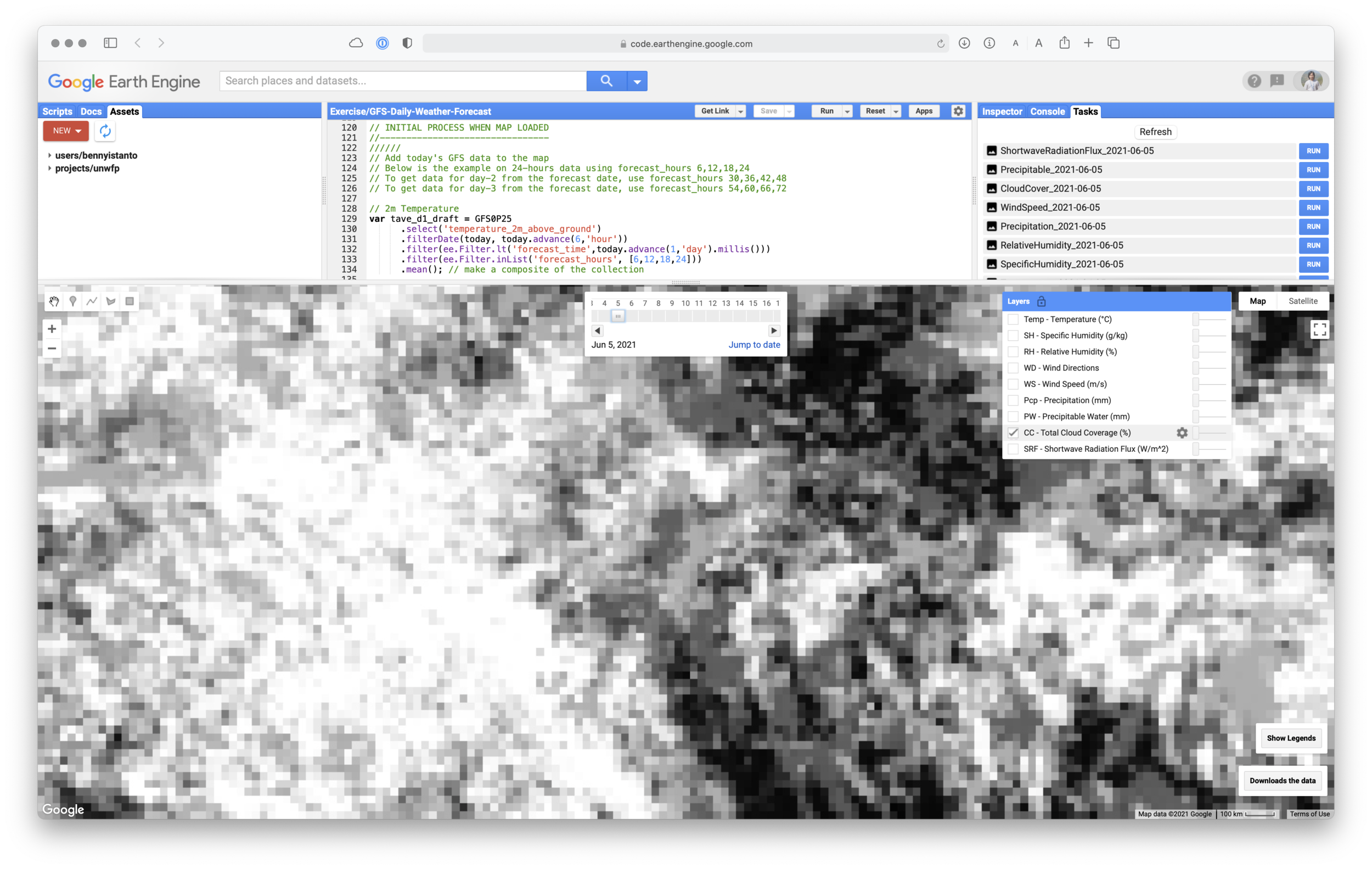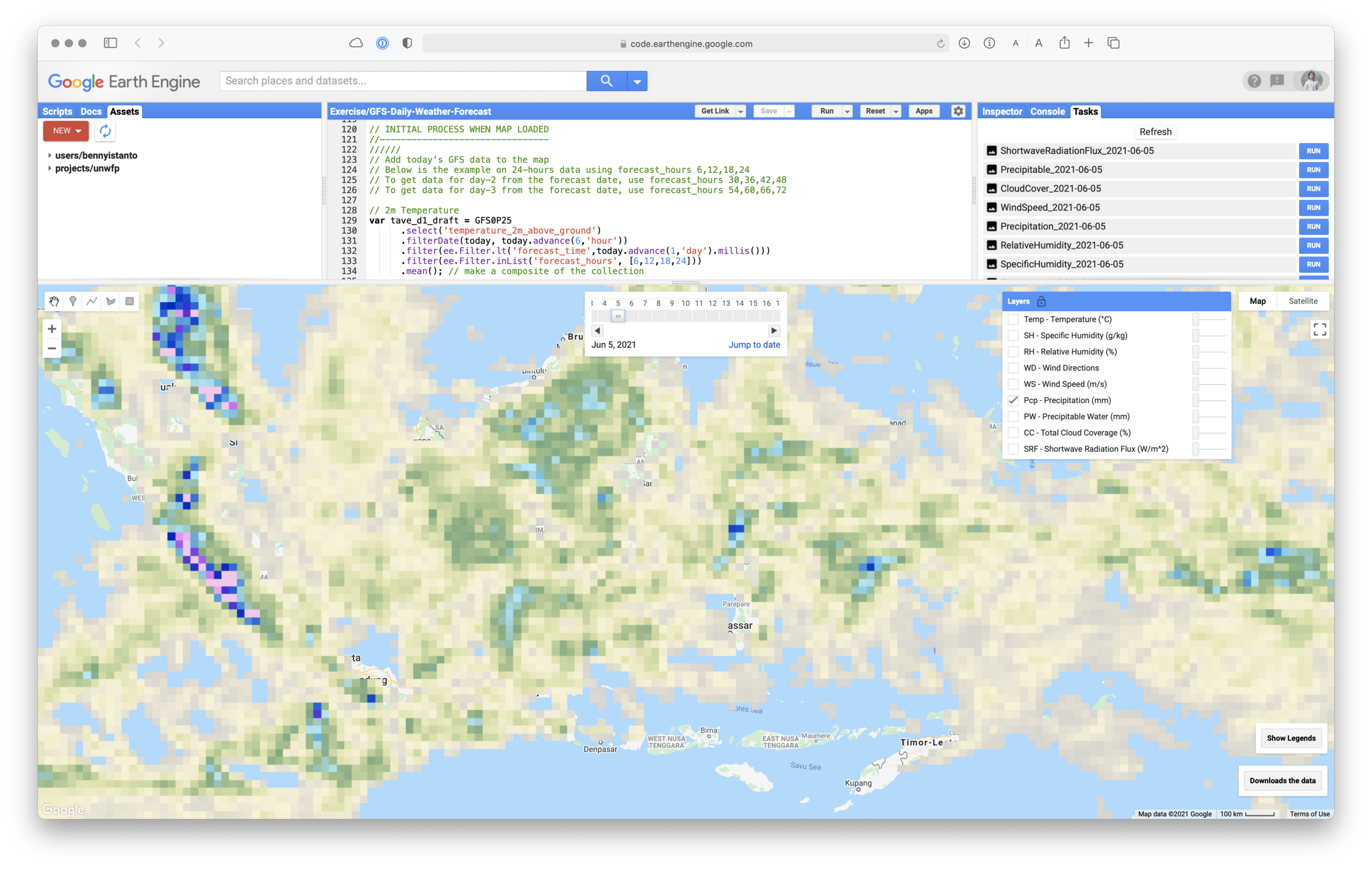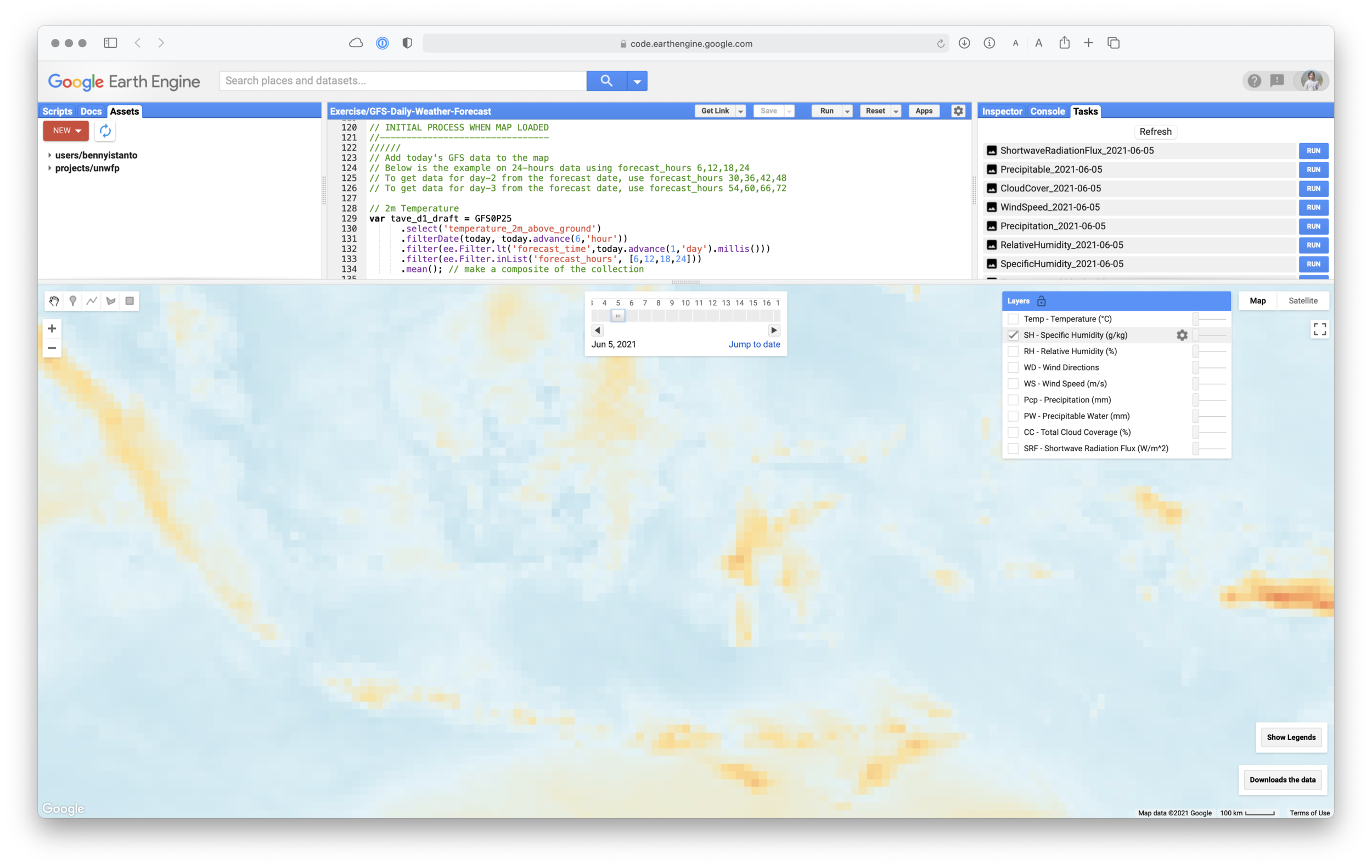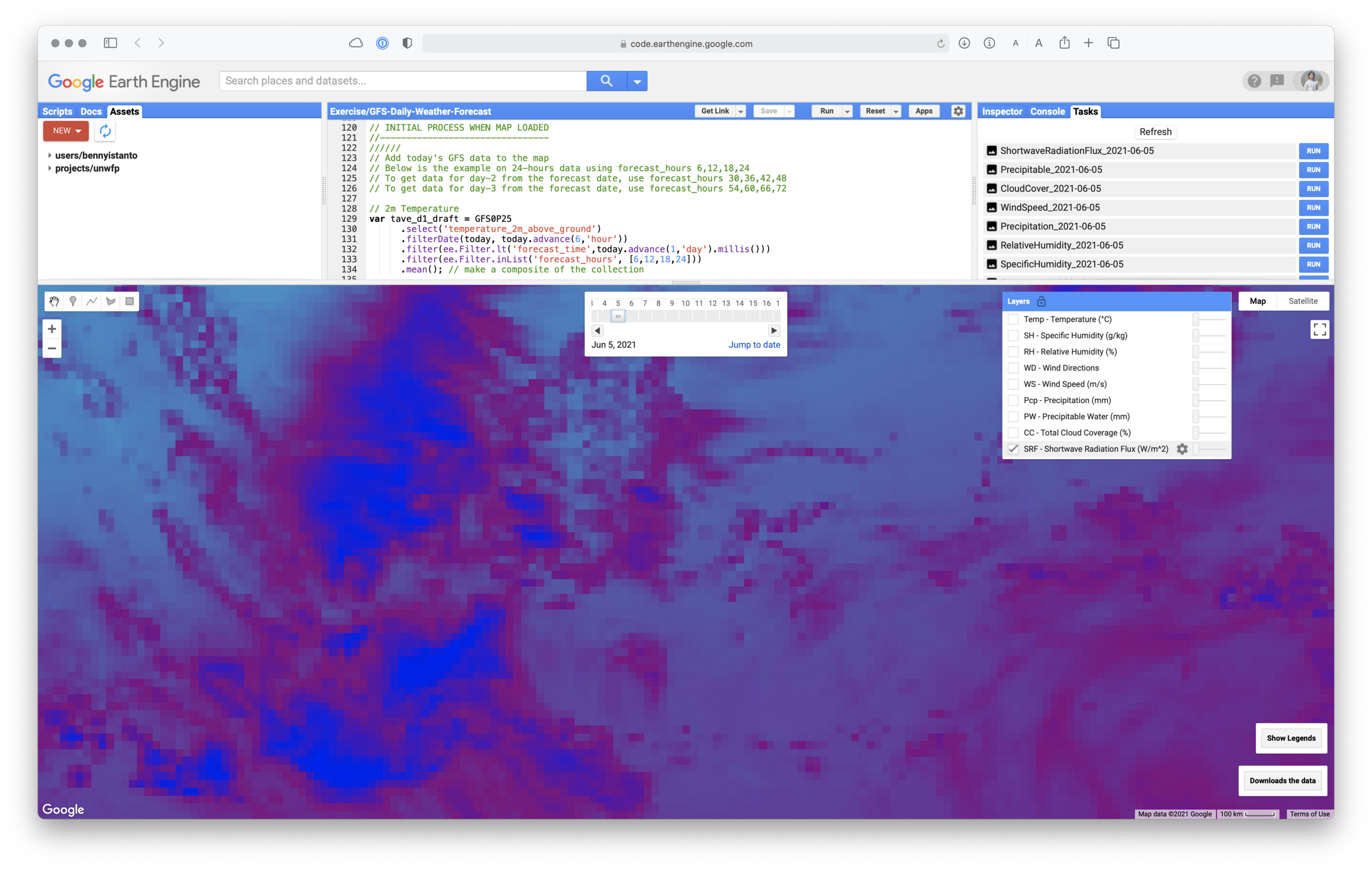 Visualize daily weather forecast from GFS using Google Earth Engine