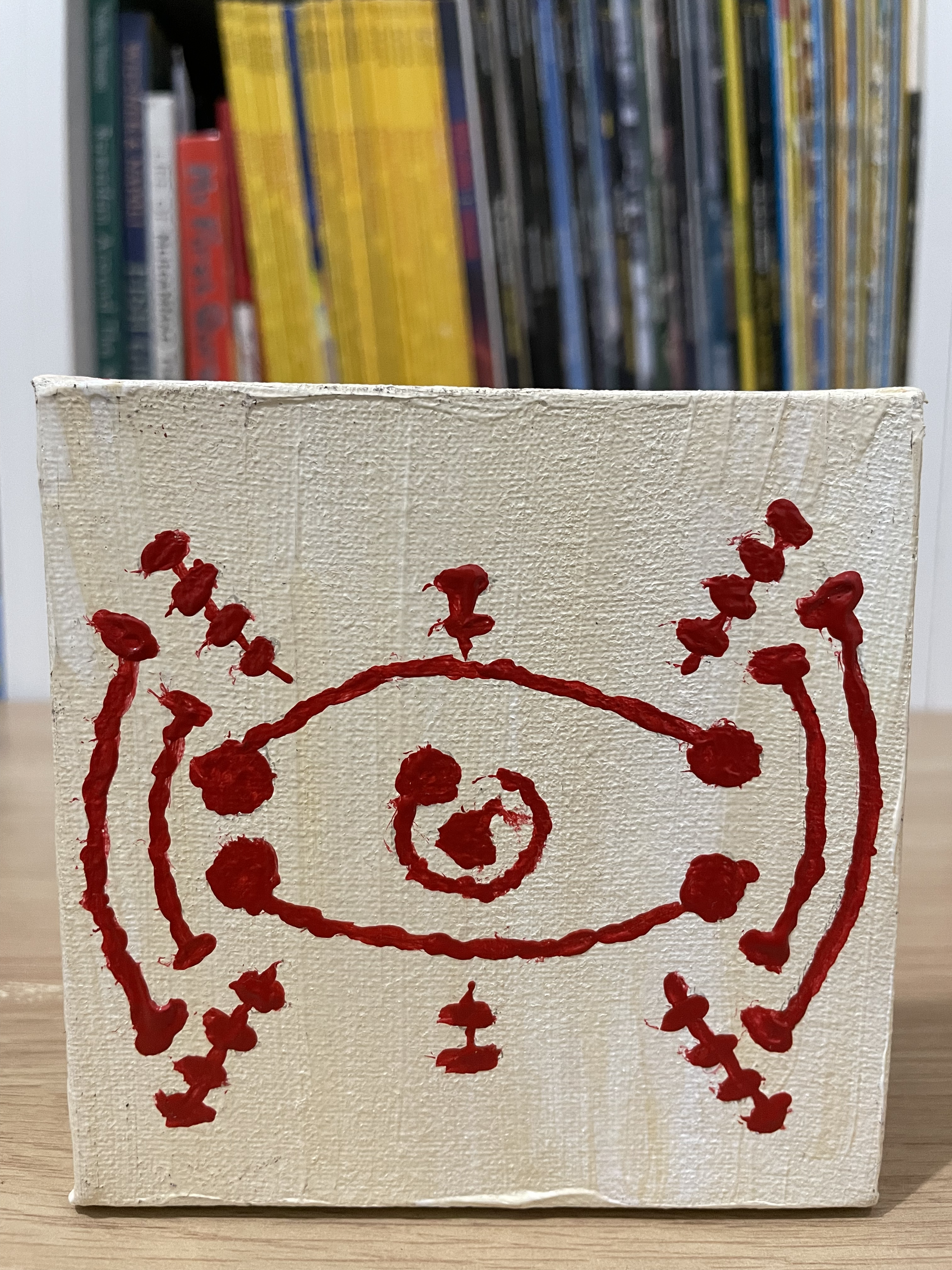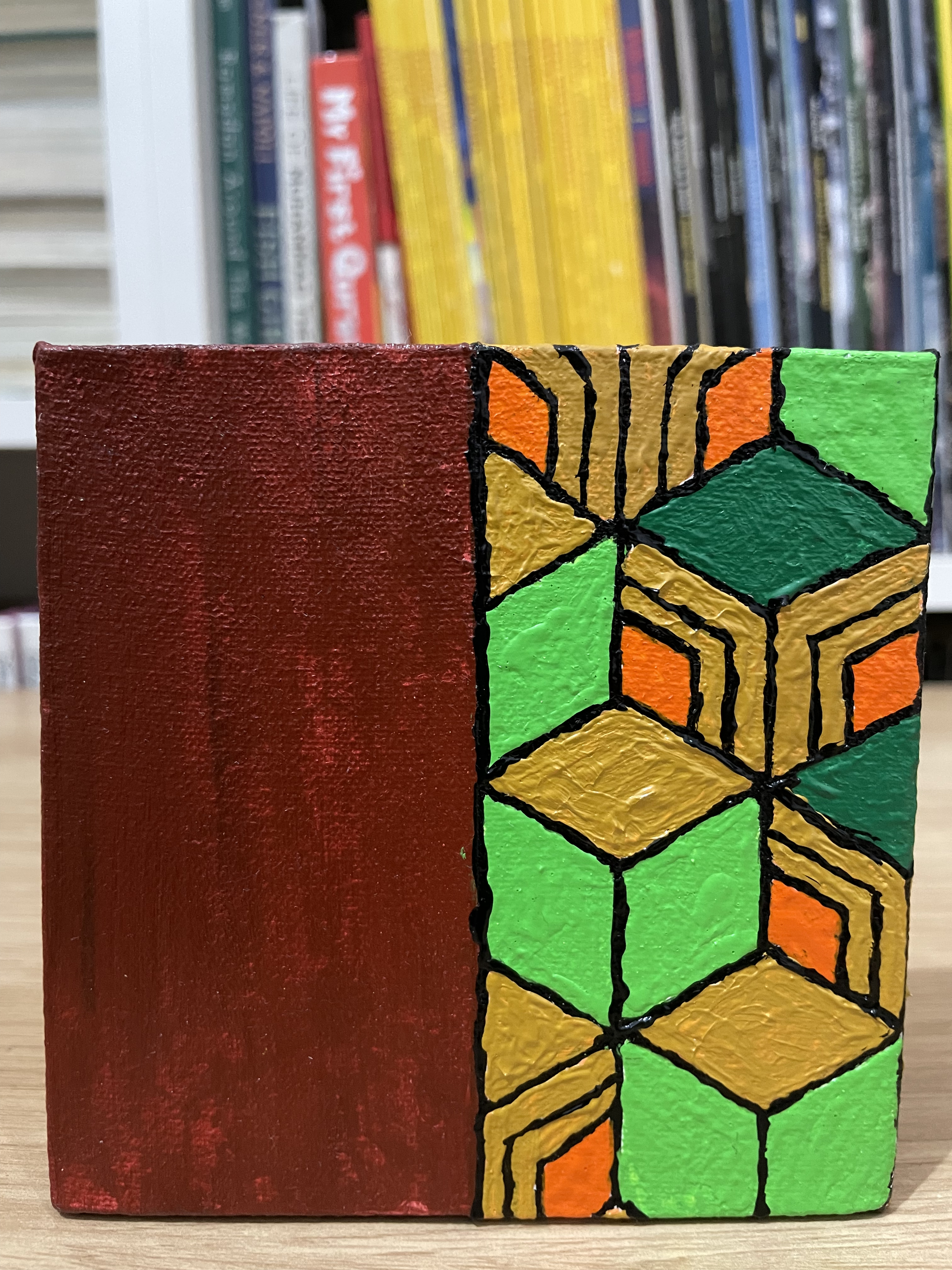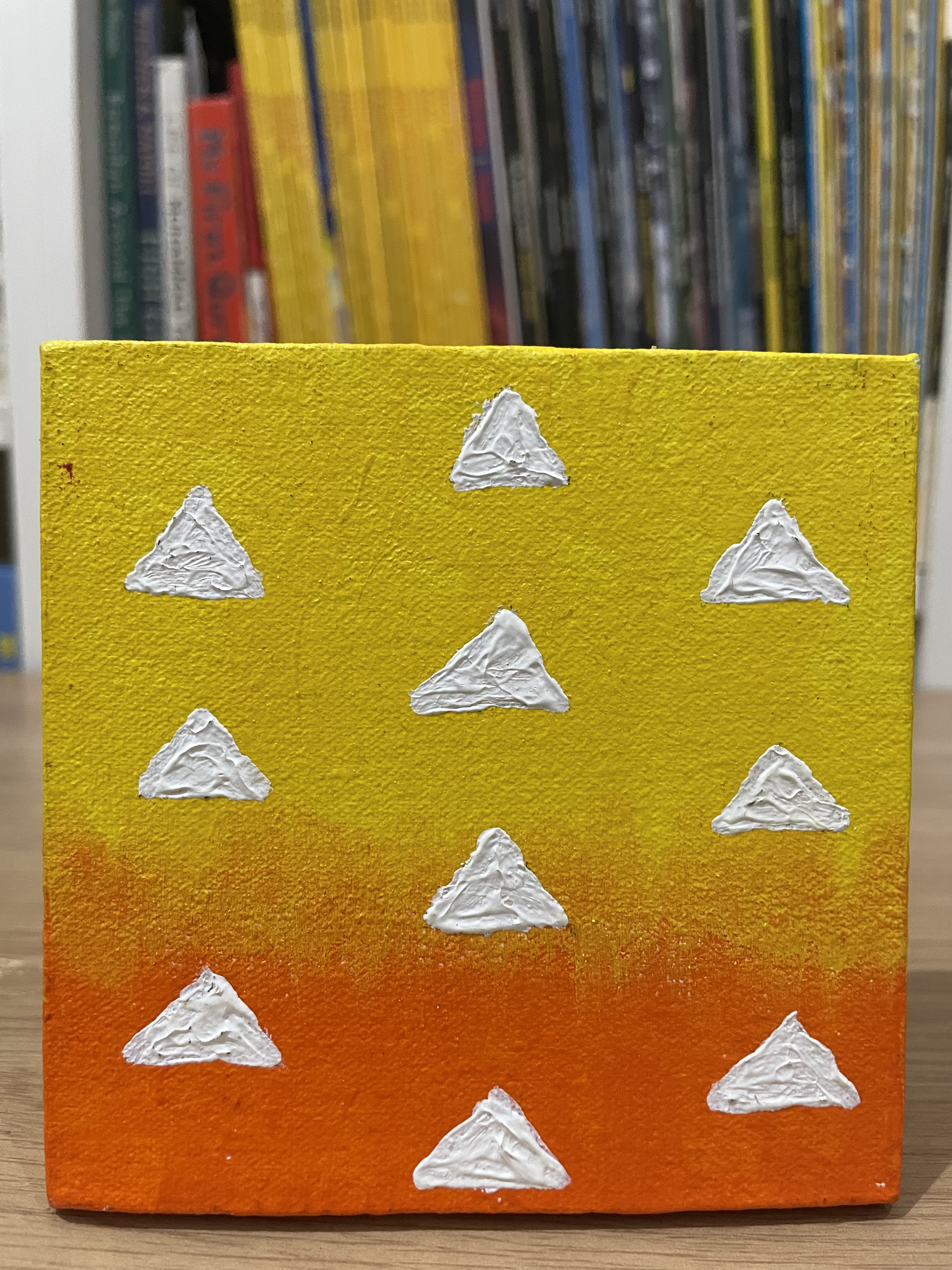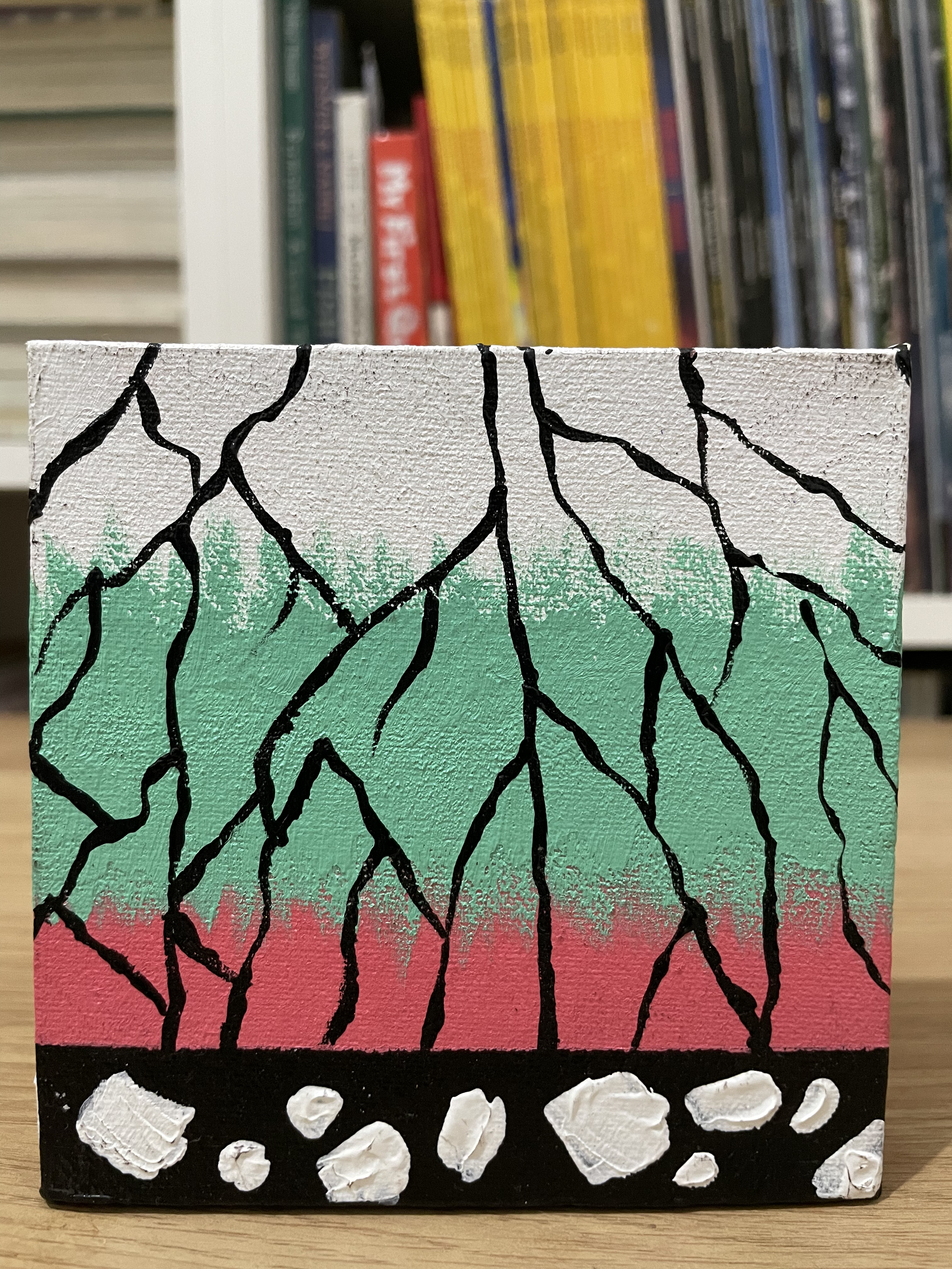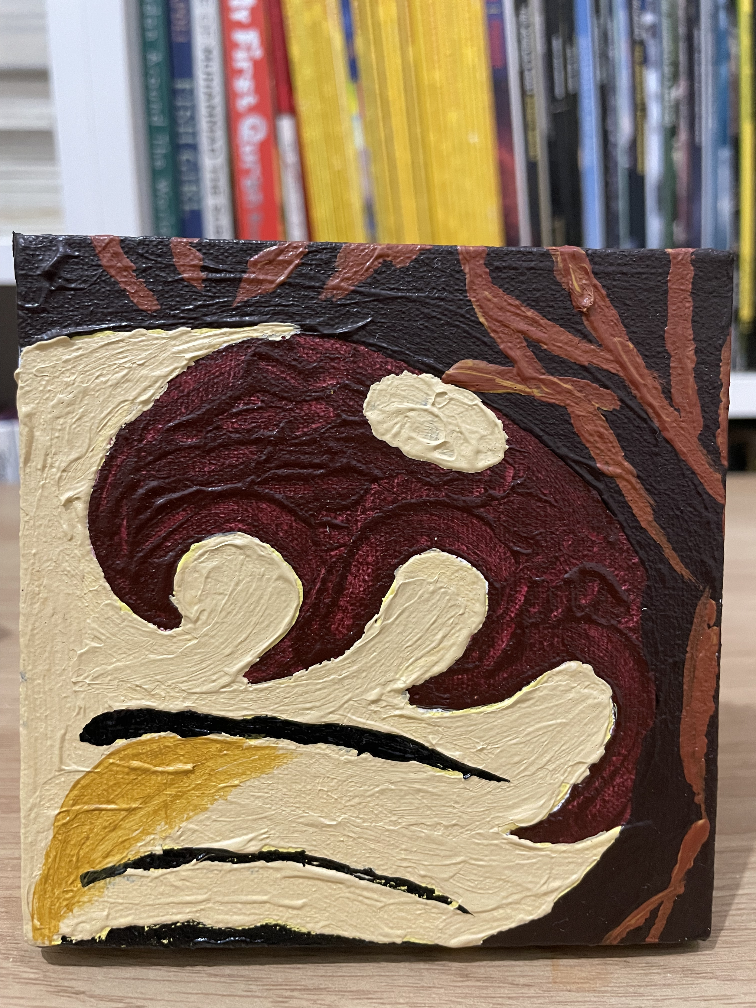 Our creative process was both fun and educational. We began with the fundamentals – applying white (or other color, depending on the character) basecoats to all canvases before letting them dry in the warm sunlight. I guided her in drawing pencil guidelines to create clean color boundaries.