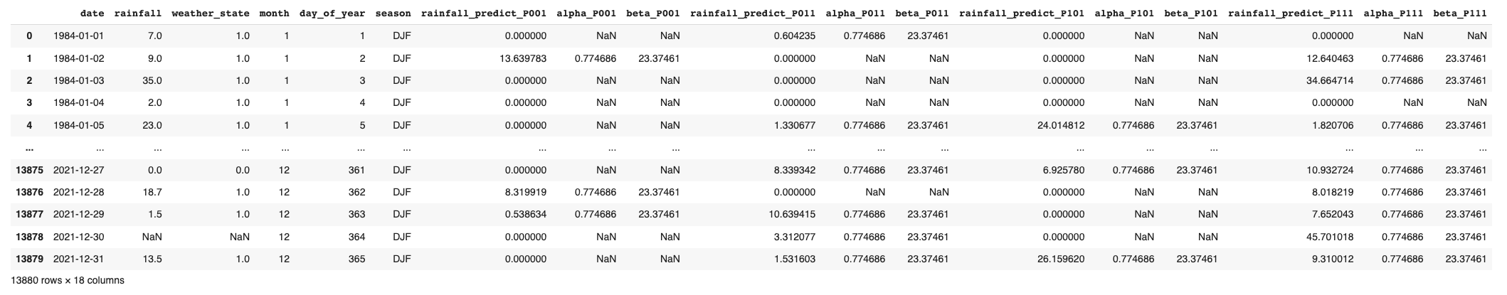 The result is a predicted rainfall dataset that takes into account the specific patterns of rainfall events and the seasonal characteristics of rainfall intensity.