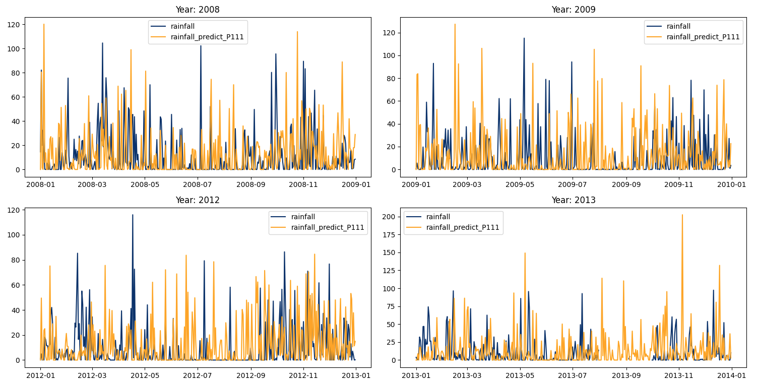 4.2.1 Visualize the rainfall compared to predicted rainfall