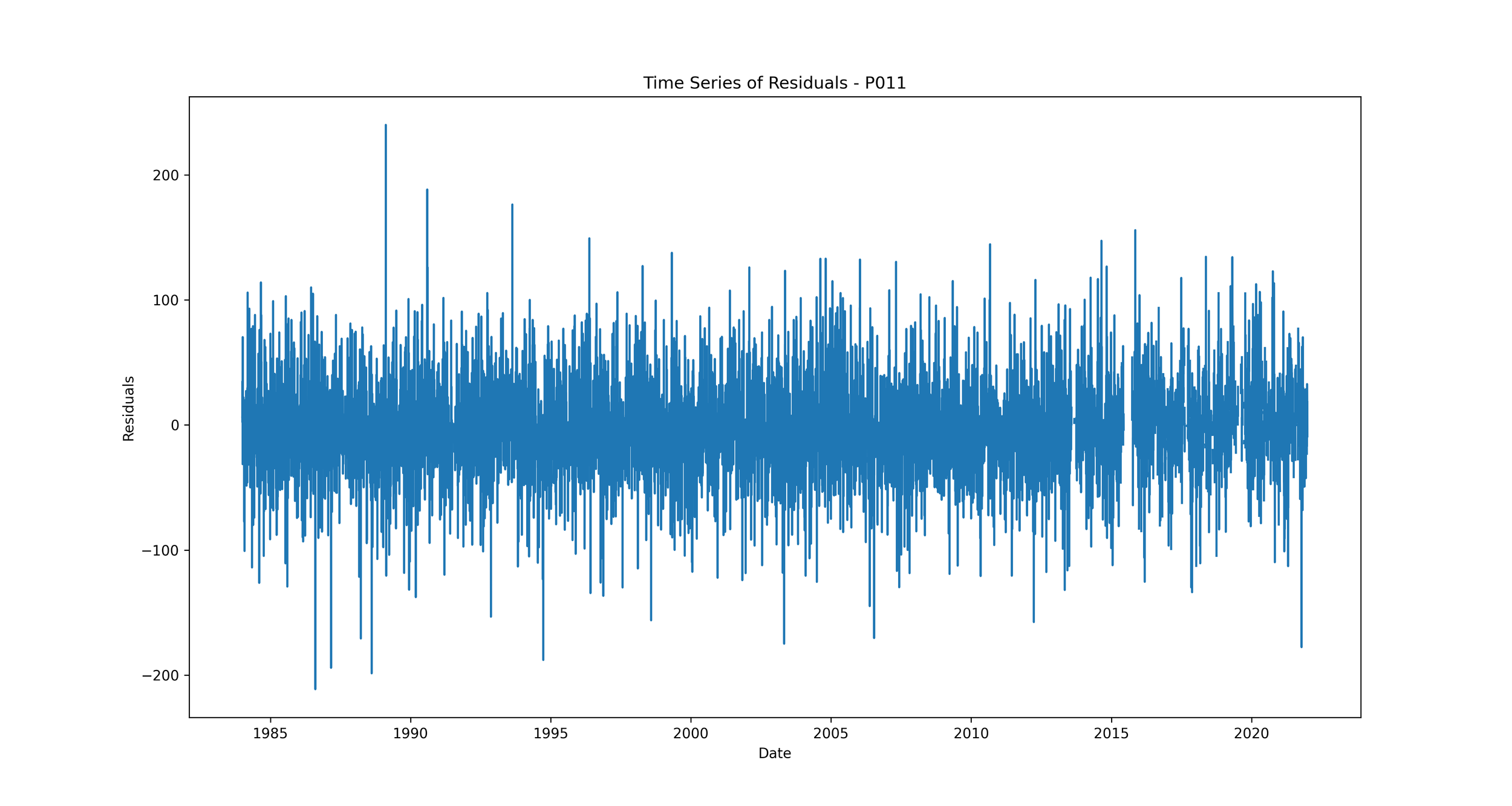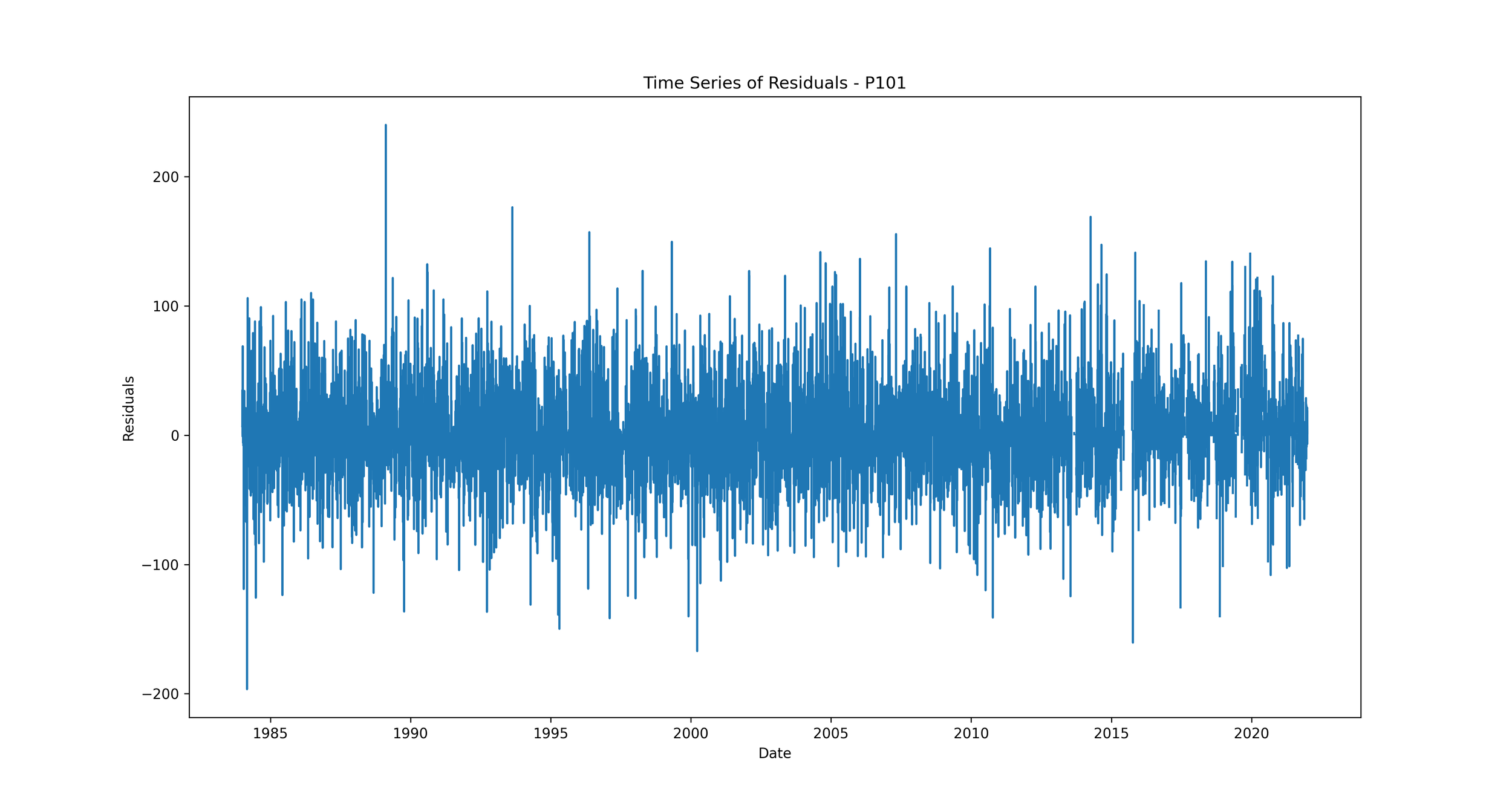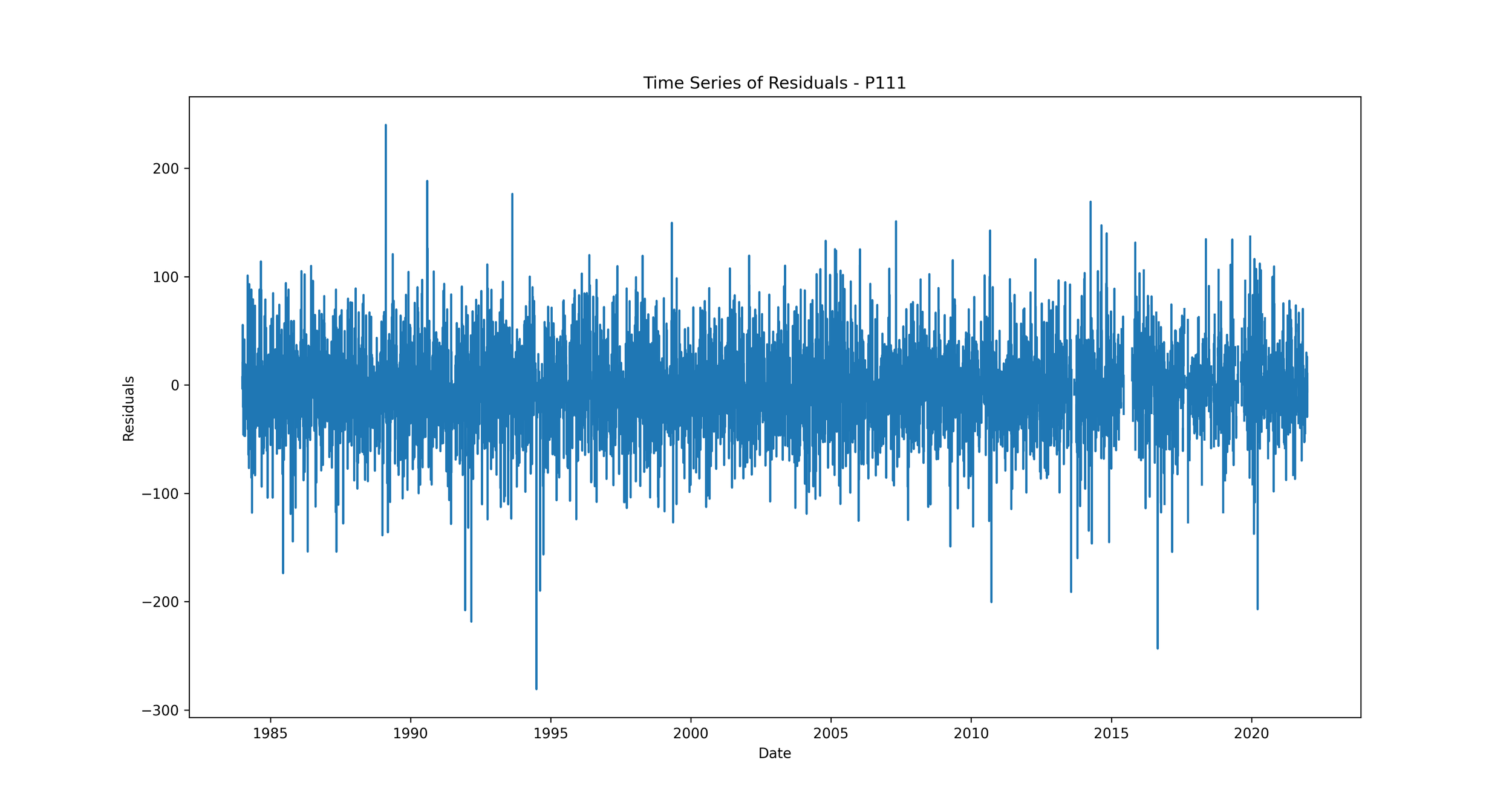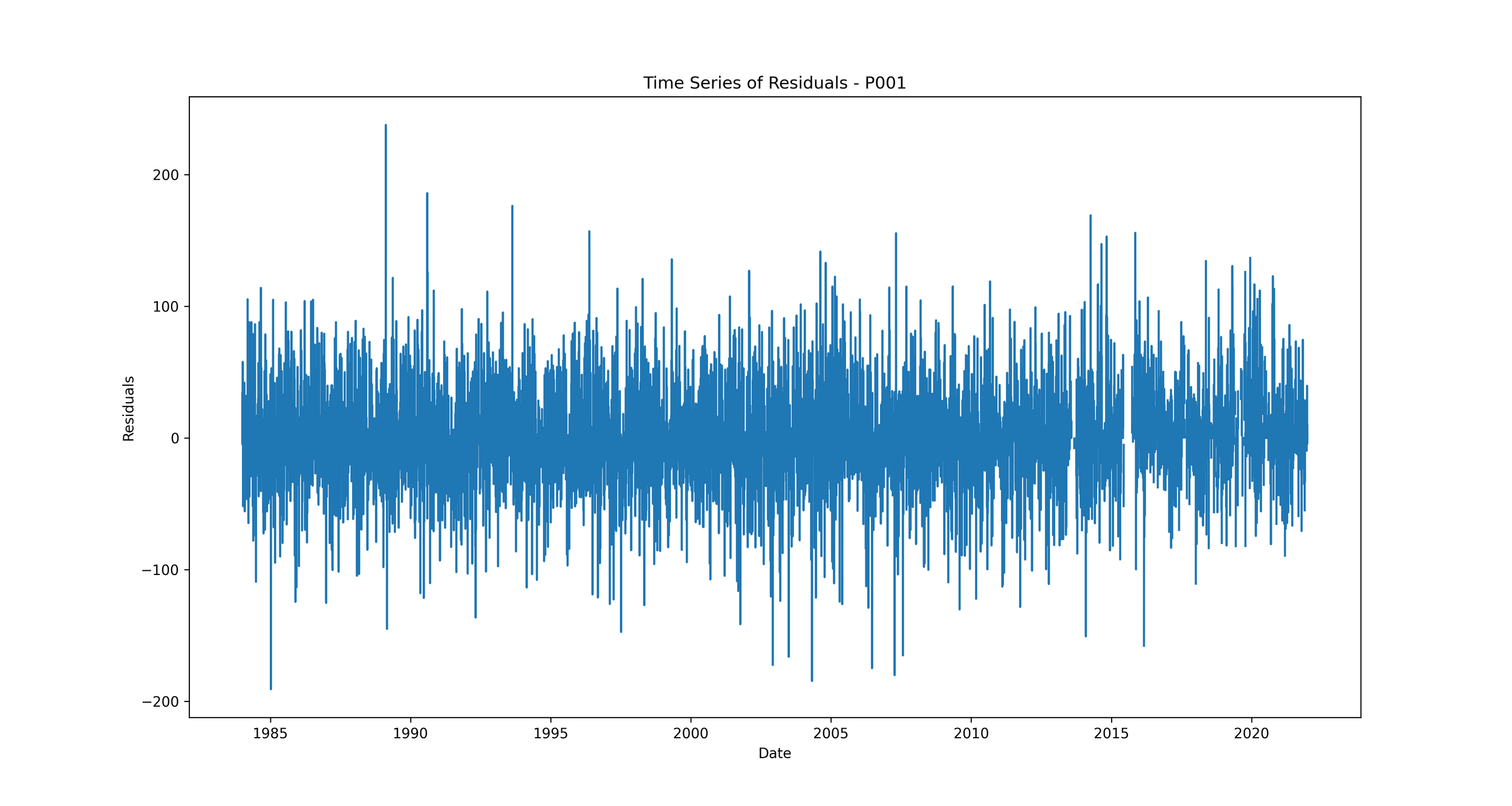 This can help you understand if your model’s performance is consistent over time. If some years have much higher or lower residuals, it may indicate that those years had unusual rainfall patterns that your model didn’t capture. You may want to investigate further to understand what’s causing these discrepancies.
