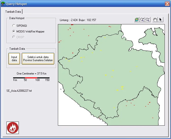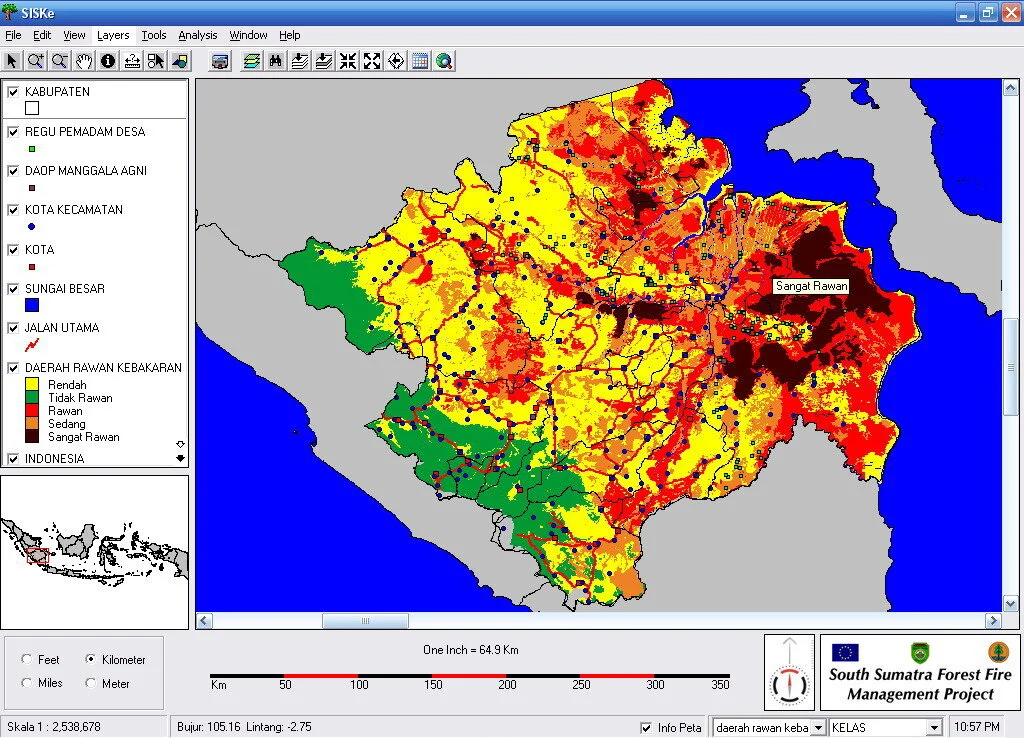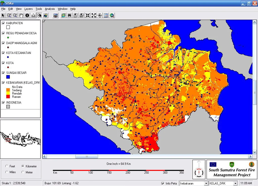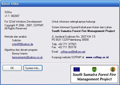 New software for hotspot and forest fire monitoring was developed to facilitate Forest Information System (FIS) operators in their regular tasks. SISKe is a robust yet user-friendly application for fire monitoring and early warning systems, developed by the South Sumatra Forest Fire Management Project (SSFFMP) in 2006-2007, and freely available not only for stakeholders in South Sumatra but also at the national level.